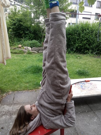 Durch Stampfen werden die Nervenenden an deinen Fusssohlen besonders stimuliert (ein bisschen wir Kopfmassage). Der Reiz von deinen Fusssohlen wird über die Nervenbahnen bis zum Gehirn weitergeleitet und stimuliert dort die Areale, die für Aufmerksamkeit, Wachheit und Kraft zuständig sind. Jetzt kannst Du noch Breitbeinigstehen und Stampfen kombinieren. Das ist wie Haka tanzen. Haka ist ein Ritualtanz der Maori, die sich für einen bevorstehenden Kampf Mut machen. Stampfen macht Dich mutig und happy!